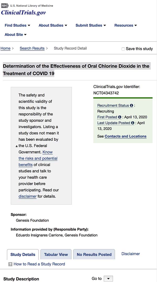 Based on the results that are found and on the evaluation of efficacy on the basis of clinical improvement on a scale of 1 to 5, and of the negativization of COVID 19, we can conclude whether the therapeutic efficacy in this investigation is considered good by verifying whether or not there is efficacy of treatment with chlorine dioxide in COVID 19.